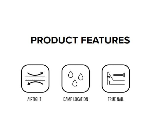 Hanger Bars: Pre-installed hanger bars with True Nail facilitate easy installation in regular lumber, engineered lumber, and laminated beams. Integral T-bar slots for easy installation in T-grids. Spans up to 24" and can be repositioned 90°. Score lines allow for tool-free hanger bar size reduction. Integral leveling flange allows for single-person installation while aligning the housing with the joists.