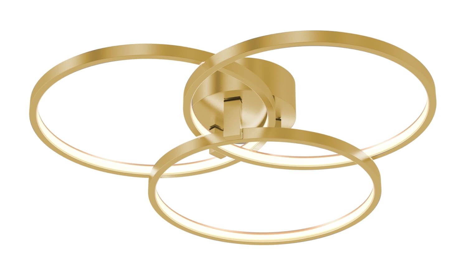 AFX Lighting's 20-in 33W Orion semi flush mount has a satin brass finish with three rings that have inner illumination. It has a 3000K color temperature with a white acrylic diffuser.