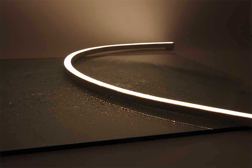 The LNT-20HBVB is a high performance, flexible LEDstrip designed as a neon replacement, useful in a wide variety of indoor or outdoor applications where a smooth surface or continuous line of light is desired. It can bend around contours or tight curves horizontally or vertically without being damaged. It allows for easy installation with its factory sealed terminators and self locking male and female barrel connectors. Fully encapsulated UV protected and wet location rated