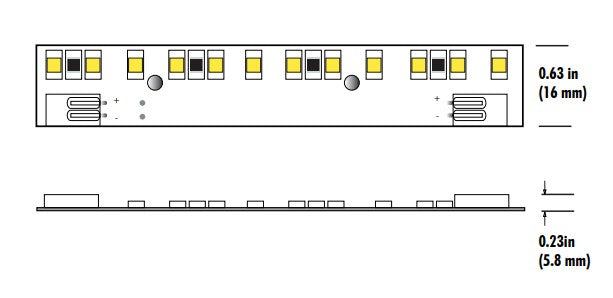 LRB SERIES is an extremely versatile solution to a wide variety of lighting needs and applications. This indoor rated rigid LED strip delivers 12 Watts and 870 Lumens per foot. Available in 6”, 12” , 24” and in 3 CCT options: 30K, 40K and 50K. Comes with a 3M adhesive backing for an easy install ( just peel-off and attach to installation surface). Ca Title 24 JA8 compliant