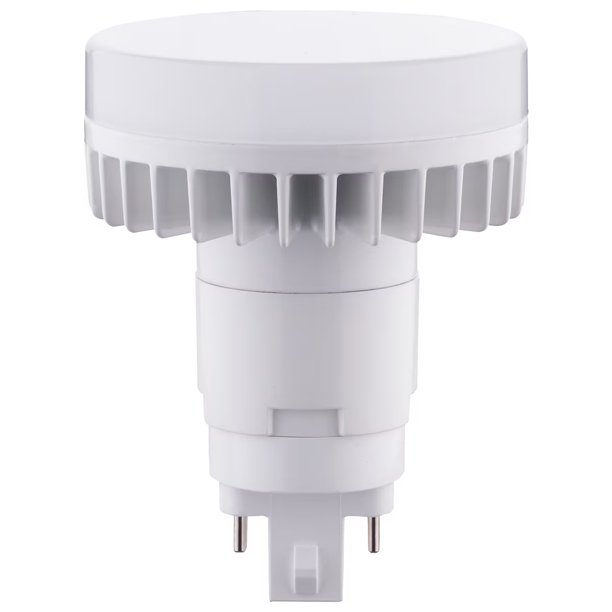 The LED12W4PV/G24Q/830DM-G7 is a 12W PLC LED bulb offering 1100 lumens of bright 3000K warm white light with an 80+ CRI and a focused omni-directional beam. It operates at 120-277VAC or ballast dependent, features a G24q base, is not dimmable, and is rated for 50,000 hours—an ideal energy-efficient replacement for 26W CFL bulbs in dry locations.