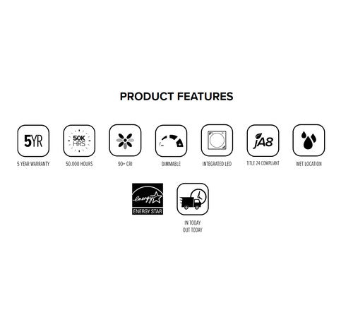 Lumen Maintenance of 50,000 hours L70 based on LM80 standardized test results.