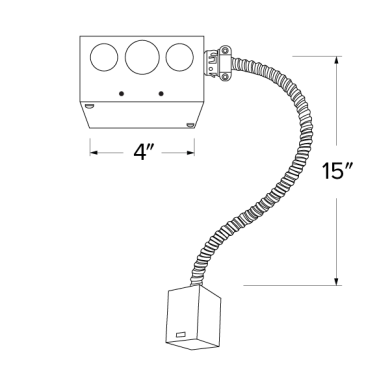 Junction Box: Positioned to accommodate straight conduit runs. 1/2” trade size conduit knockouts.