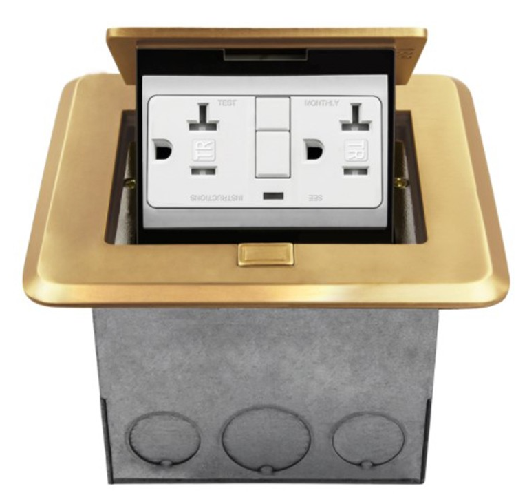 The ENERLITES 961248-C-GFCI is a 1-gang brass square soft pop-up floor box assembly with a tamper-resistant, GFCI receptacle. The device features 20A tamper-resistant duplex receptacles, which include internal shutters to prevent the insertion of foreign objects. The floor box easily pops up for easy access to power; simply snap the cover closed when not in use.Specifications: