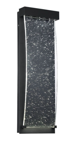 The 35887-010 is an Outdoor Surface Mount From Eurofase Lighting. This Small LED light fixture has a Rectangular Shape with a clear seeded crystal glass shade offering a modern design. This fixture highlights architectural features with its complexity creating a welcoming glow on your home’s exterior or interior. With its Black finish and galaxy like glass Lantern feel, this fixture will for sure grab the attention of all. This LED fixture offers 6 energy watts, 400 Lumens and 3000K Color Temperature.SPECIFICATIONS:
