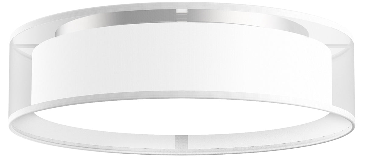 The Dalton Organza Ceiling Flush Light brings a clean tailored look to your interior space. The circular acrylic diffuser is gently wrapped by an organza shade. Available in two sizes