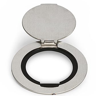 Lew Electric MOI4-SYS-COMM-SS-AHC Customizable, flush mounted, 2-Hour Fire Rated Poke-Through with four inch core, Systems furniture communication-power & comm cabling, Articulated Hinged Cover , Stainless Steel Finish