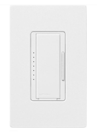 The Maestro dimmer provides an easy-to-operate tap switch that turns lights on/off to your favorite light level. Use the rocker dimmer to adjust lights manually. The delayed fade-to-off feature gives you 10-60 seconds to leave the room. Combine with Maestro companion dimmers to control a single light from up to 10 locations. The PRO LED+ model delivers maximum flexibility and performance with phase selectable dimming, color change front plastics, screw terminals, and an optional neutral connection.Features: