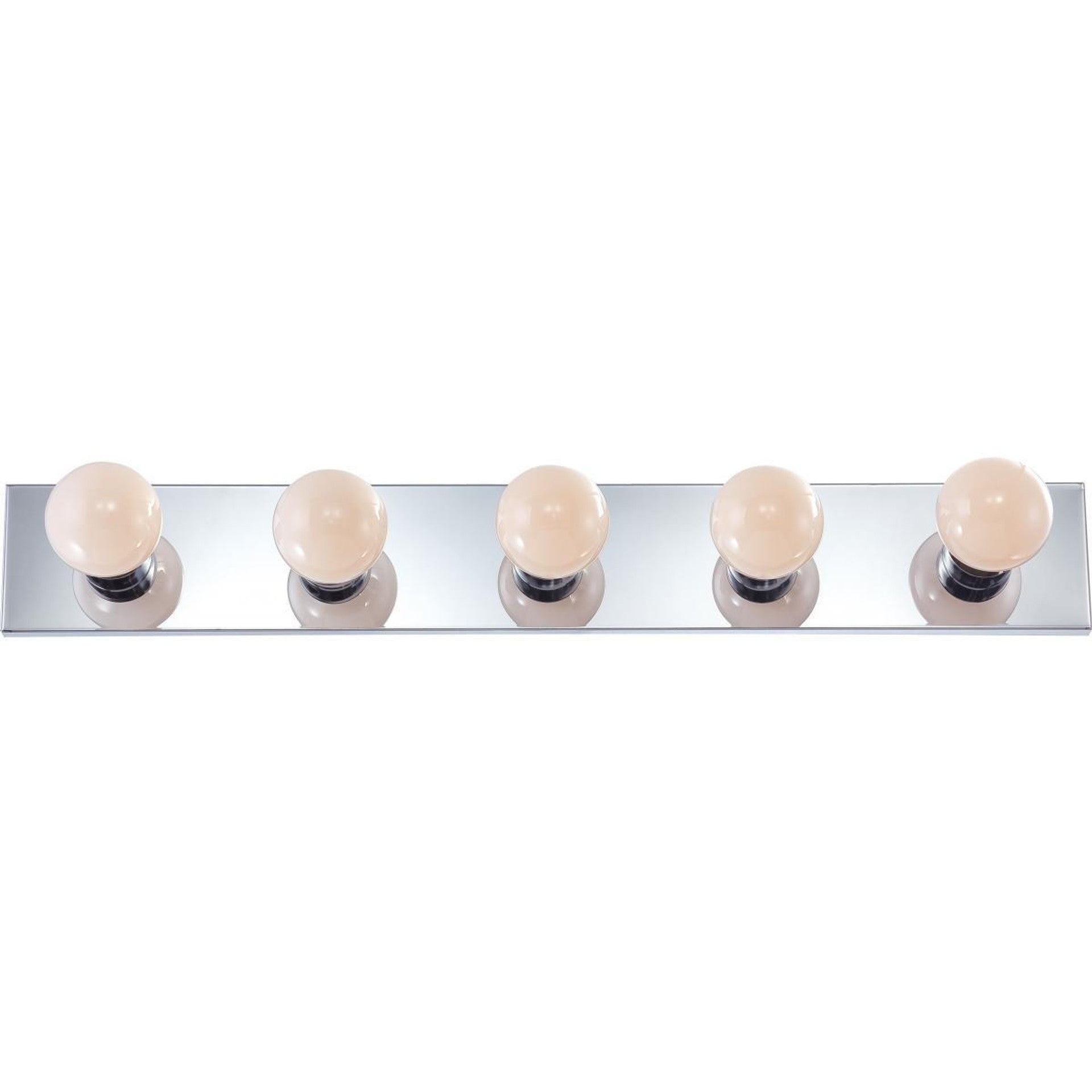 Embrace the warmth and elegance of the Nuvo vanity strip. This captivating 5-light fixture, adorned in polished chrome, effortlessly transforms your bathroom, living room, or dining room into a haven of comfort and style.
