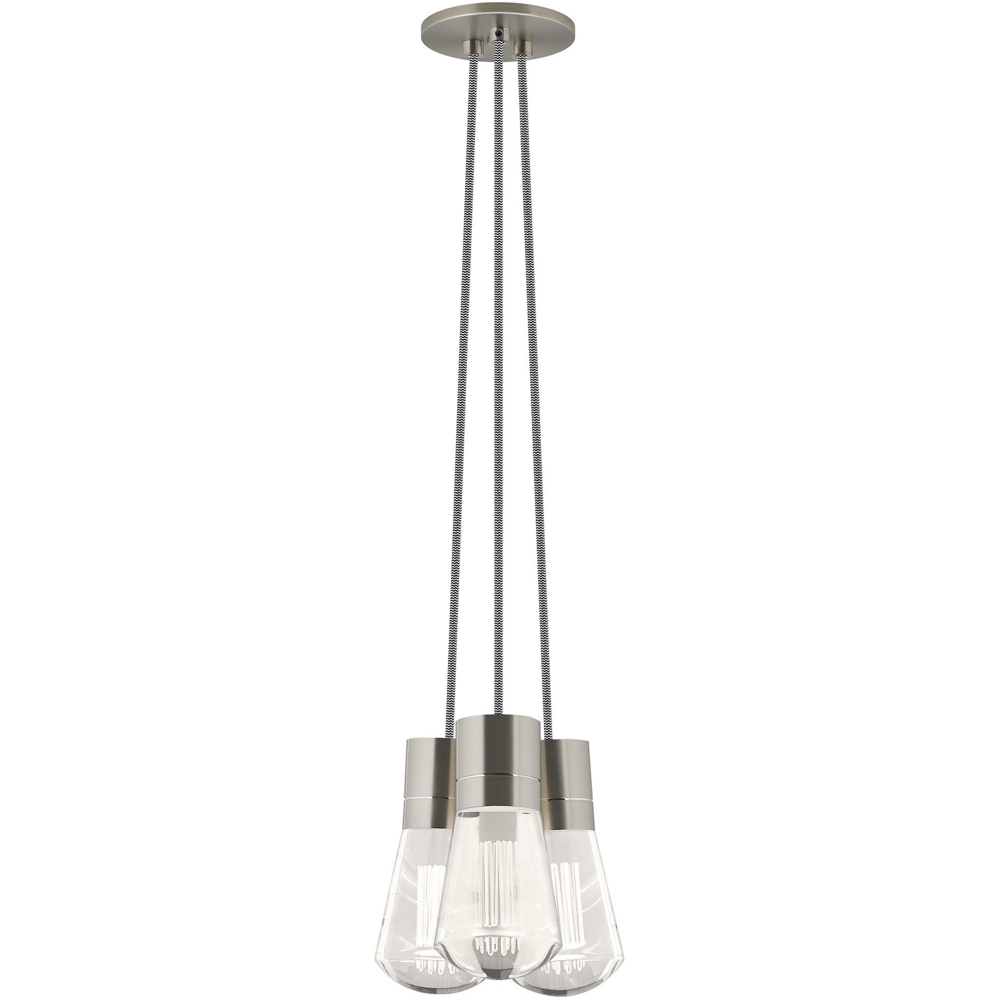 The Visual Comfort Architectural Sean Lavin Alva LED 3.6 Inch Pendant Ceiling Light in Satin Nickel blends modern design with classic Edison-style inspiration. Featuring a black and white cord, this integrated 27W LED pendant delivers 240 lumens at 3000K with 90 CRI for warm, balanced illumination. The optic crystal bulb with laser-etched filaments creates a distinctive aesthetic, enhanced by a sleek aluminum frame. Dimmable with ELV or TRIAC dimmers and adjustable up to 79.6 inches, this 3-light fixture offers a sophisticated lighting solution for contemporary interiors.