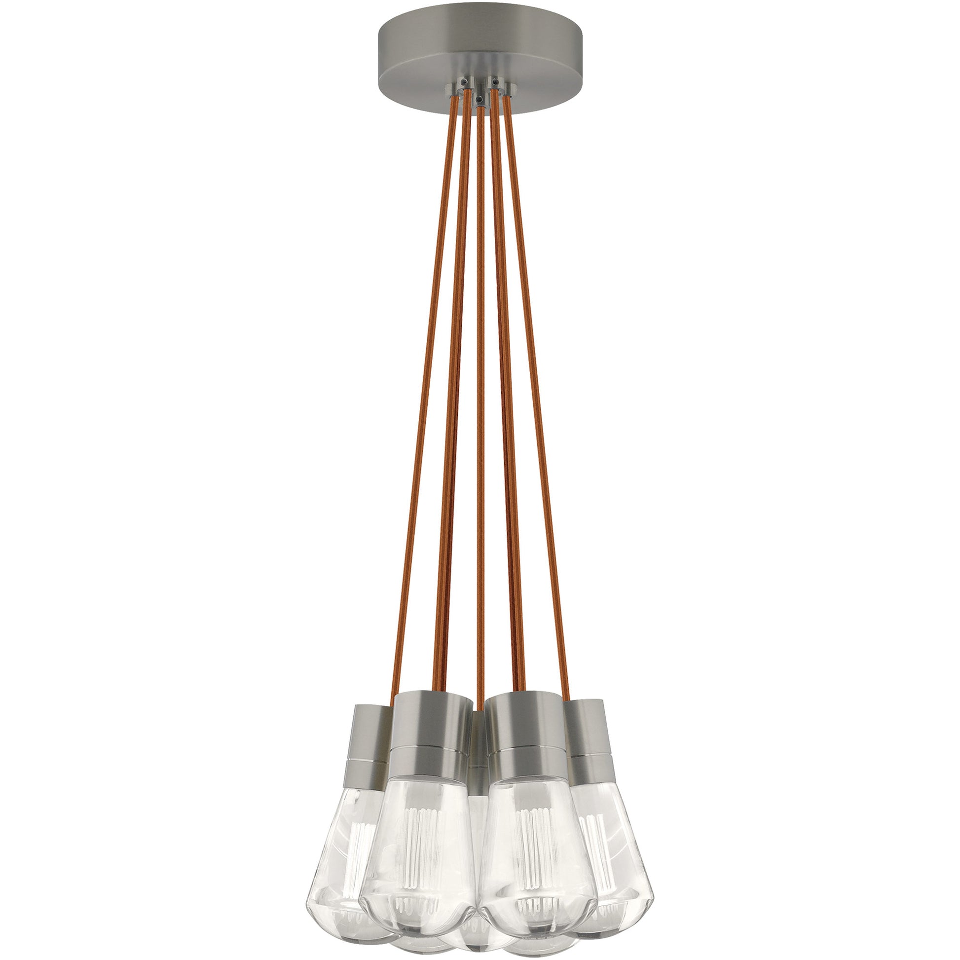The Visual Comfort Architectural Sean Lavin Alva LED 3.6 Inch 7-Light Pendant Ceiling Light in Black with Copper Cord is a refined modern reinterpretation of the classic Edison-style lamp. Designed with a 63W integrated LED system delivering 240 lumens per light at 90 CRI and warm dimming capability from 3000K to 2200K, it creates an ambient and adaptable glow. The optic crystal bulbs feature laser-etched filaments for an artistic, modern aesthetic. Dimmable with ELV or TRIAC dimmers and adjustable up to 79.6 inches, this chandelier-style pendant is perfect for both residential and commercial interiors.