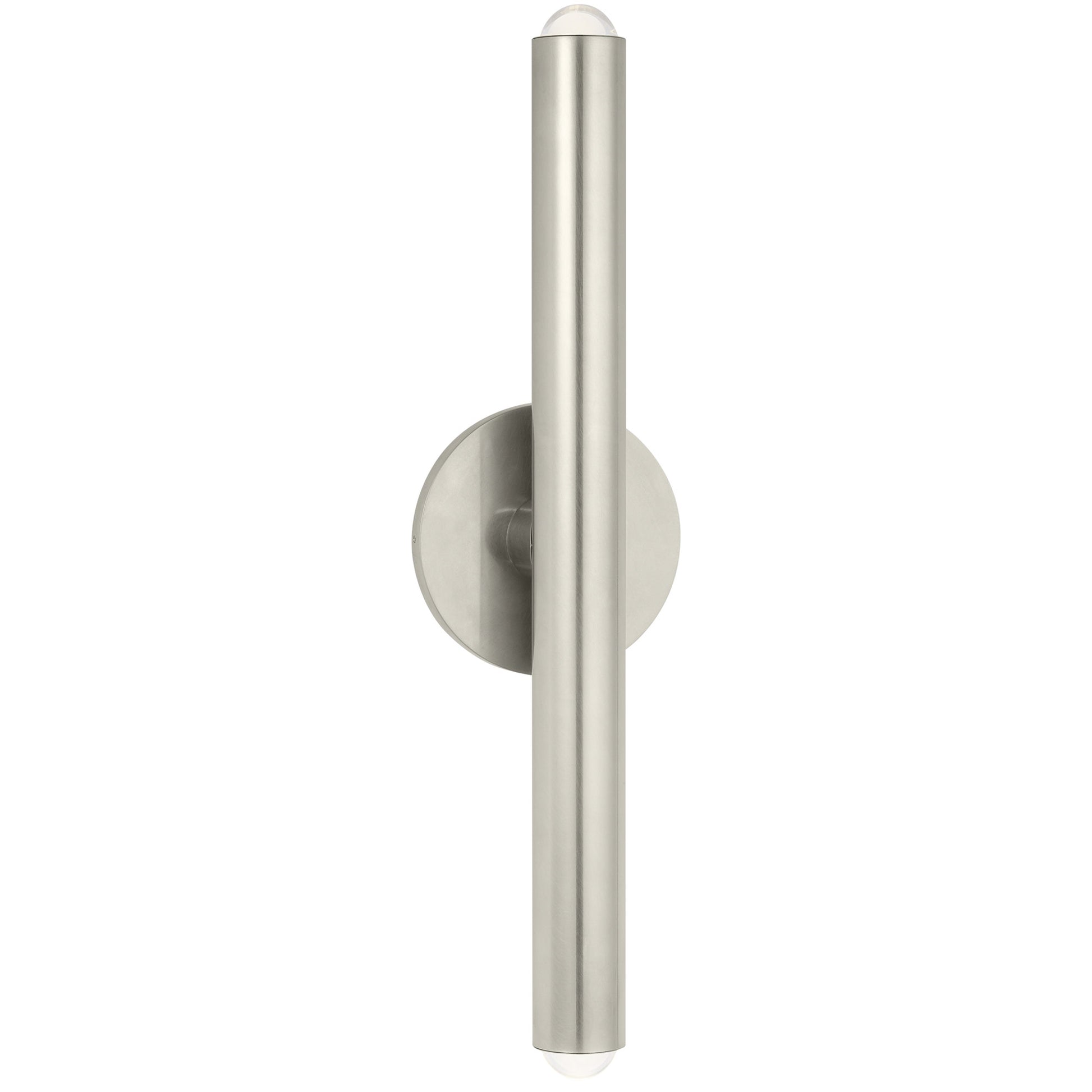 The Kelly Wearstler Ebell 2.3" LED Wall Sconce by Visual Comfort Architectural combines sculptural elegance with precision lighting. Crafted from Antique Nickel with a multi-dimensional domed crystal prism, this minimalist fixture emits a refined 2700K warm glow at 90 CRI and 713 lumens. The integrated 14.4W LED module delivers up and downlight illumination while maintaining ADA compliance with a slim 2.3" profile. Perfect for hallways, bedrooms, or accent walls, the Ebell Sconce balances artistic design with state-of-the-art lighting performance.