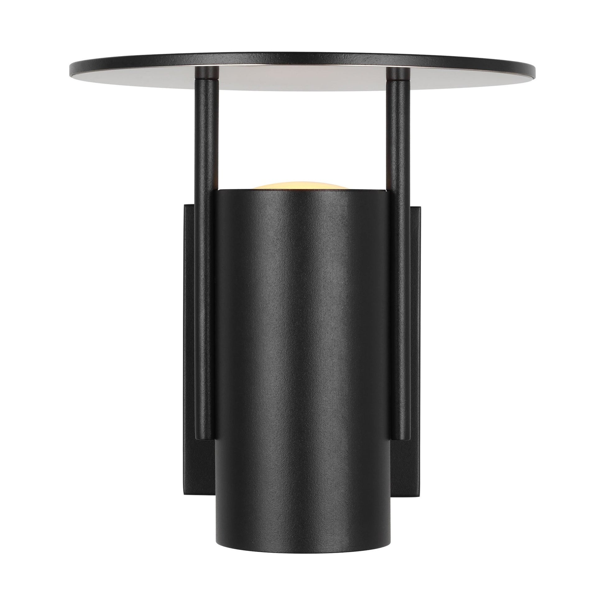 The Visual Comfort Architectural Kelly Wearstler Ronan 8" LED Outdoor Wall Lantern in Black brings a modern twist to classic barn lighting. Its vertical design with dual up and downlighting provides ambient illumination, while a removable round metal shade adds a reflective accent. Crafted from durable aluminum with a glass diffuser, this wet-rated fixture delivers 360 lumens at 2700K and 90 CRI using an integrated 11W LED, ideal for both indoor and outdoor environments.