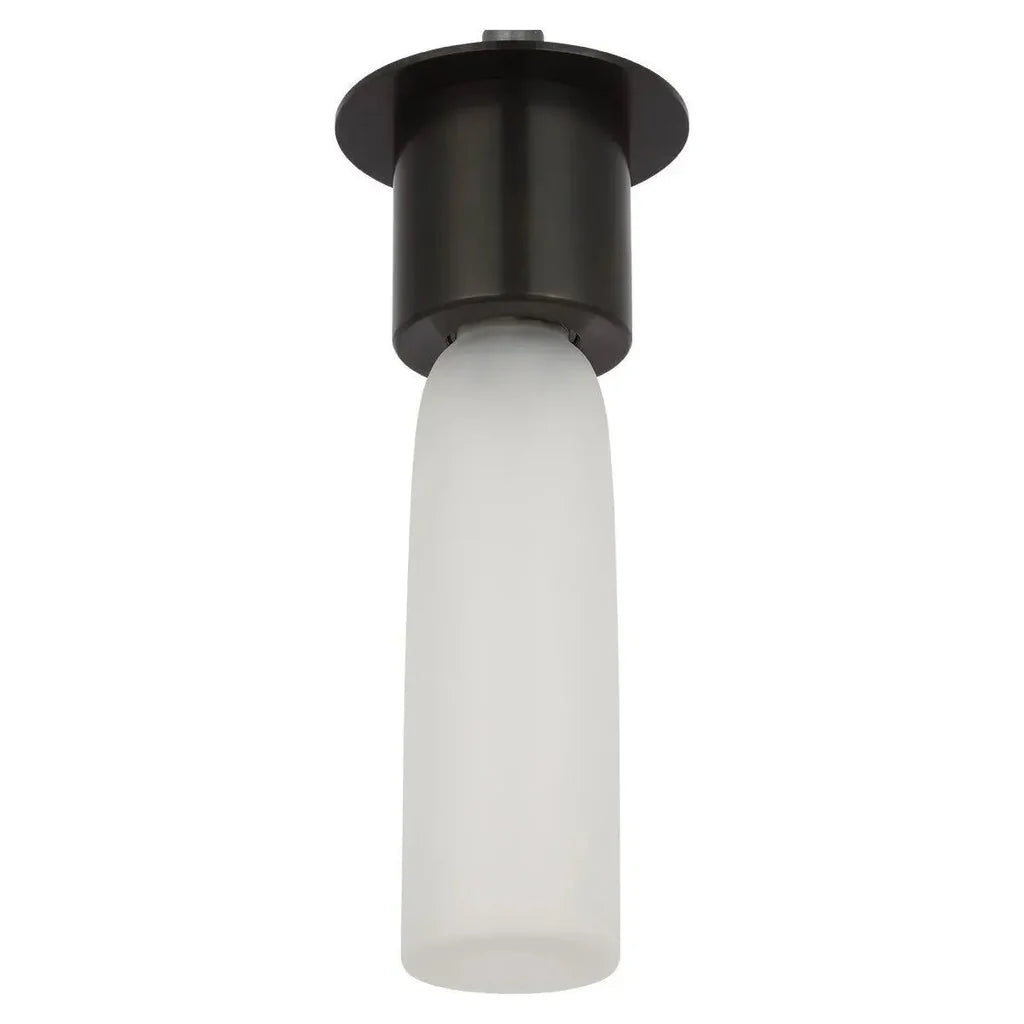 The Visual Comfort Architectural Kelly Wearstler Volver 4.5" LED Flush Mount in Bronze combines refined simplicity with artisan craftsmanship. Its etched blown glass shade, featuring a soft flute form and dimpled end, diffuses light for a warm glow. Ideal for compact spaces like corridors, bathrooms, or bedrooms, this 11.3W integrated LED fixture provides 212 lumens at 2700K with a 90 CRI. Dimmable via ELV, TRIAC, or 0–10V systems, this modern flush mount delivers both beauty and performance.