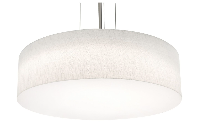 AFX Lighting's 24-in 42W Anton pendant has 3 color temperatures to choose from with a satin nickel/linen white finish & features Lumafuse, a laminated fabric/acrylic shade.