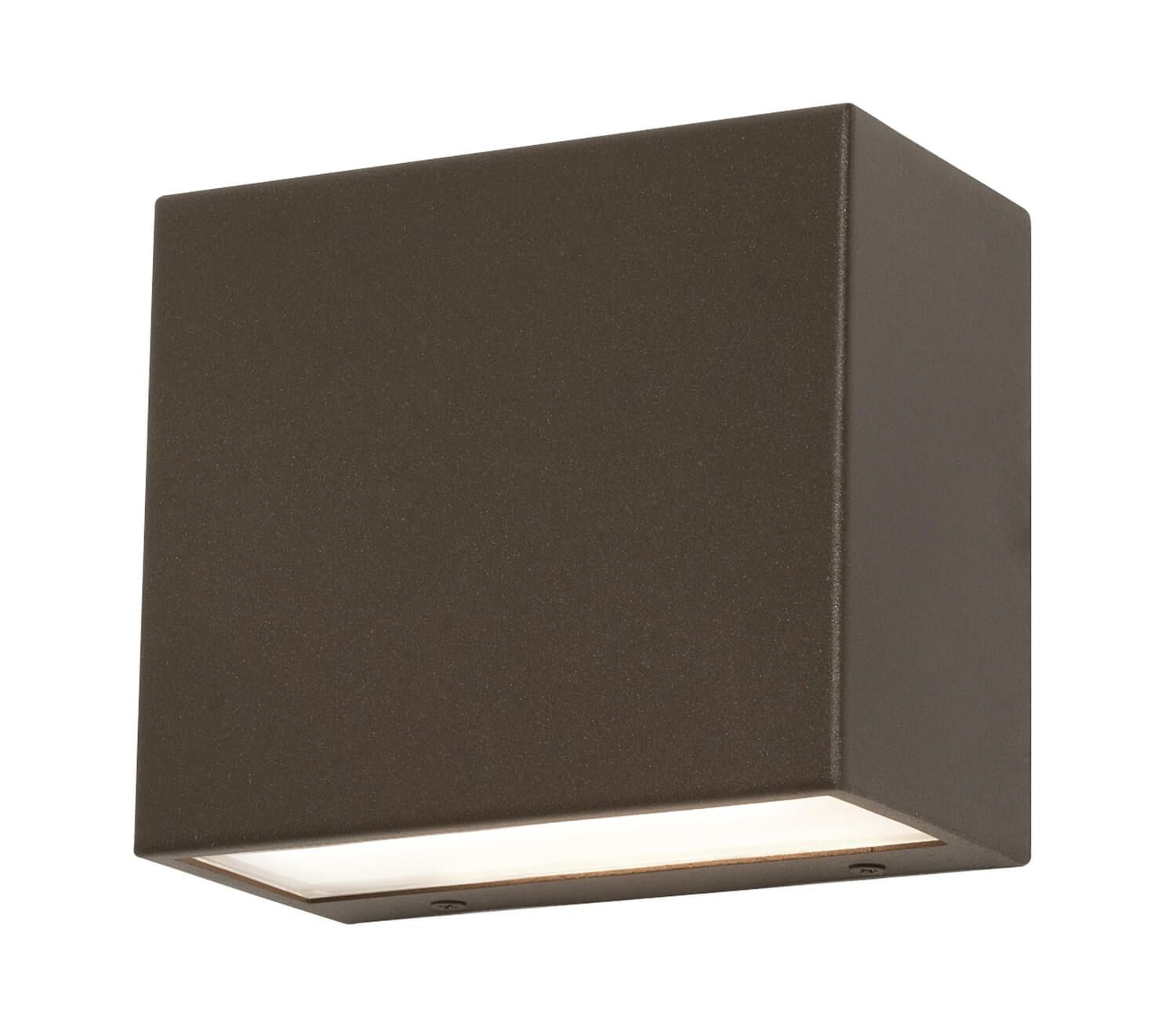 AFX Lighting's 12W LED Dakota outdoor wall sconce in Bronze has a solid metal housing with frosted glass diffuser and downlight illumination. Rated for 120V-277V installation and compatible with 0-10V dimmers.