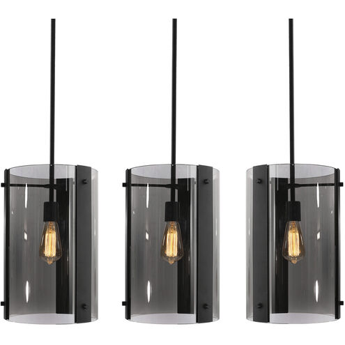 Elevate your space with the Dana 3-Light Pendant, a perfect blend of industrial charm and transitional elegance. Featuring a sleek cylindrical design with clear, smoky black glass shades, this pendant adds a bold, sophisticated touch to any roomwhether it's a bedroom, office, or living room. The striking black finish and modern industrial look create a captivating focal point, while the soft, diffused lighting enhances the atmosphere, making it both functional and visually stunning. Ideal for those seeking a blend of style and warmth, the Dana pendant is a versatile choice for any décor.