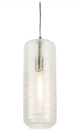 The HRP06MBSNCS is a 1-light pendant light in a clear swirl glass cover that is suitable for installation of 1 medium base bulb and the following features: