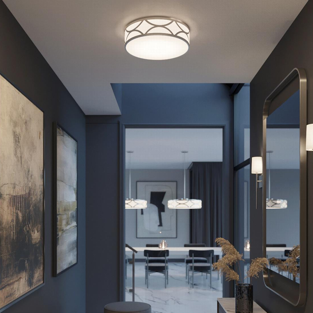 The Lake LED flush mount by AFX lighting is an excellent choice to provide long lasting, energy efficient LED illumination for your general ceiling lighting application. This fixture features an modern drum design with laser cut design and white acrylic diffuser. Being CCT-selectable, these fixtures allow the user to select between 5 different white light color temperatures to find the right light output to suit your application. The high color rendering (90+ CRI) produces rich and vibrant colors in the area of illumination.Specifications: