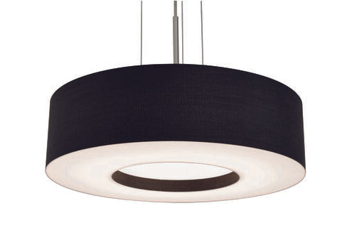 This modern single drum design provides a dramatic look and features Lumafuse™ laminated fabric/acrylic shade. White bottom acrylic diffuser disperses the light. Suspended with a 3 ft. adjustable rigid stem expandable up to 9 ft. Product can be used over reception areas, desks, restaurants, and in public spaces.Specifications: