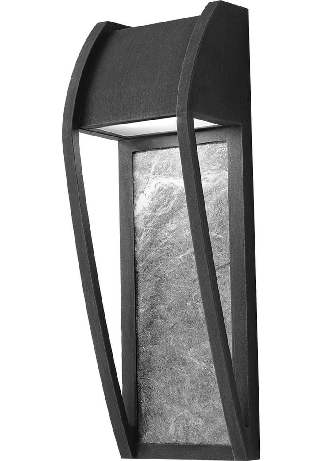 AFX Lighting's 10W LED Newport outdoor wall sconce has weather resistant aluminum housing with ceramic textured back plate and frosted glass diffuser.
