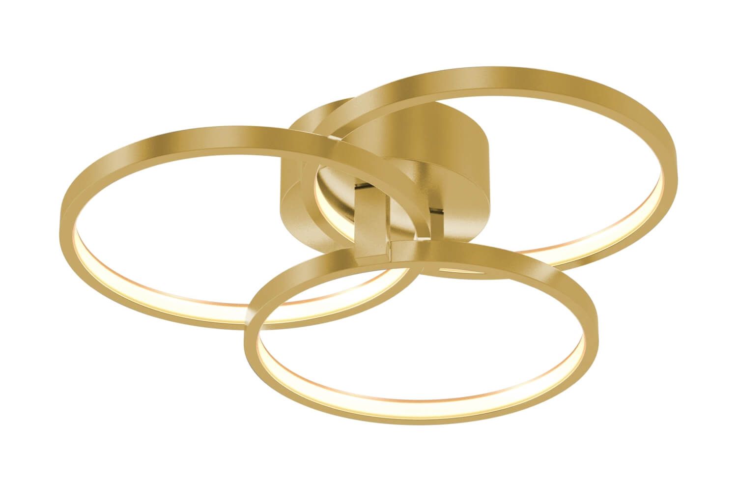 AFX Lighting's 16-in 26W Orion semi flush mount has a satin brass finish with three rings that have inner illumination. It has a 3000K color temperature with a white acrylic diffuser.