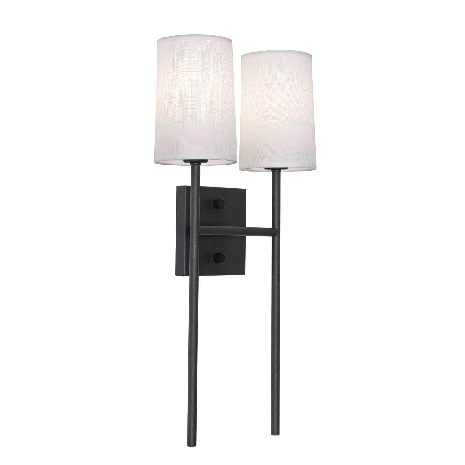 AFX Lighting ROSS1020CBBK Rose 2 Light 20 Inch Tall Wall Sconce In Black With White Linen Shade