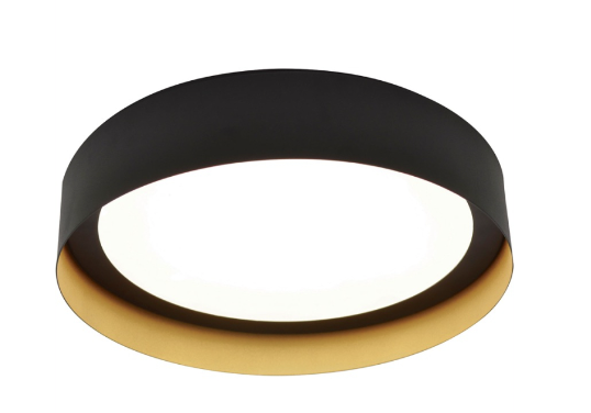 The Reveal series of LED surface mount lights by AFX lighting are an excellent choice to provide long lasting, energy efficient LED illumination to your general ceiling lighting application. This fixture features a contemporary aesthetic with a low profile design with edge-lit panel construction and a metal ring with a painted inner/outer finish. The high color rendering (90+ CRI) produces rich and vibrant colors in the area of illumination. This particular model is 0-10V dimmable, making it ideal for use in commercial applications. Ideal use in kitchens, hallways, and anywhere general lighting is needed.The RVF121400L30D2BKGD is a 17 watt, 12" diameter LED surface mount fixture in a black / gold finish that provides 819 lumens of 3000K warm white light and the following features: