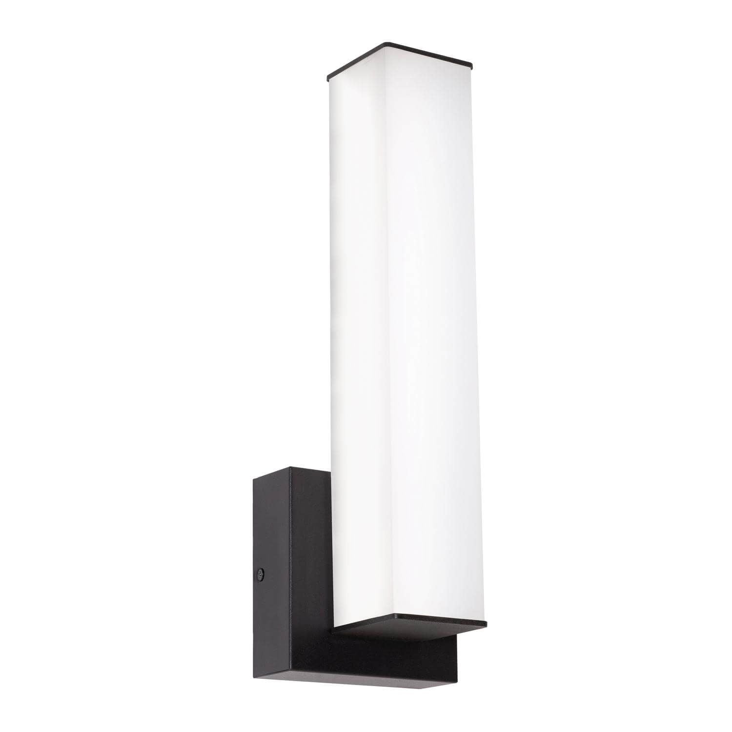 AFX Lighting's 14-in 12W Tad wall sconce has a square tube and base design with a black finish and white acrylic diffuser. It can be mounted vertically or horizontally.