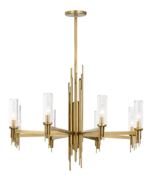 The Torres Chandelier makes a stark yet stunning statement in your interior space. The elegant forged metalwork is complemented by ribbed glass, inspired by the resurgence of brutalist art and architecture.FEATURES :