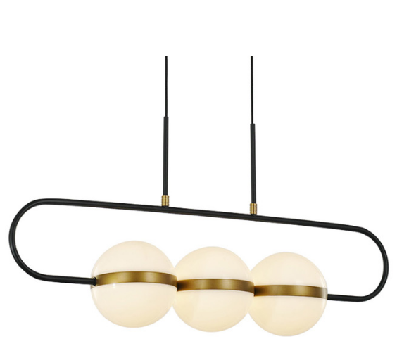 The Tagliato Linear Pendant brings both style and simplicity to your interior space. The clean frame holds acrylic globes, each accented with a Brushed Gold band.Specifications: