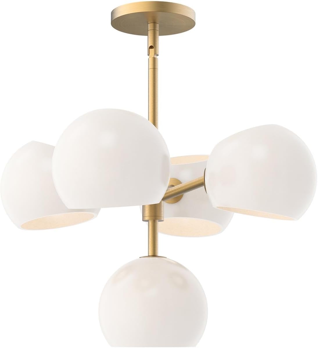 Kenji is the perfect mix of Scandinavian sensibility and Japanese inspiration. Composed of a sleek, architectural dome paired with minimal opal glass accents, this collection is an ode to chic Japandi style.