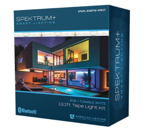 The Spektrum+ RGB + CCT-tunable white tape light kit is the next evolution of smart tape light- letting you change colors in both the RGB and white light color spectrums from a convenient phone app or included wall-mountable remote control, or utilize voice-command with Amazon Alexa or Google Home via the Spektrum Gateway (sold separately). The Spektrum+ series of smart lighting by American Lighting utilizes Bluetooth mesh technology to allow users to fully control their RGB/CCT-tunable lighting, as well as allowing for the creation of dynamic groups, scenes and schedules for ease of control. Watch the video below to learn more!