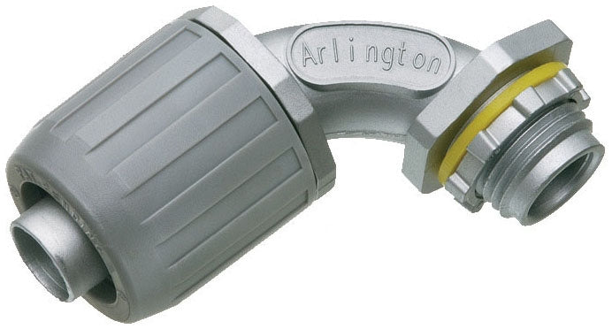 SNAP2IT zinc die-cast, push on, metallic, liquid tight connector. Trade Size 1/2". 90 degree.Specification: