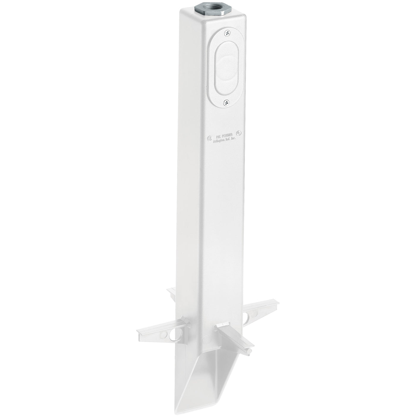 Arlington's Gard-N-Post. 19.5″ support for outdoor light fixtures. Built in stabilizers for extra stability. Openings in stabilizers allow for insertion of extra support material. Angle Cut post for easy access to underground wiring. one 1/2″ Knockout to cover photocell installations. Color White. Color is permanent, no chipping.Specifications: