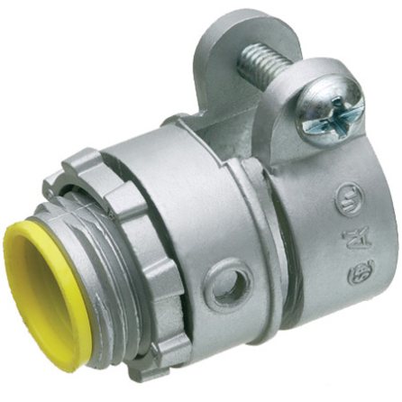 Zinc die-cast, two screw, 3-1/2" knockout squeeze connector with round end stop. For Flex, AC, MCI cable. Concrete tight when taped. End stop diameter: 3.977. With insulated throatSpecification: