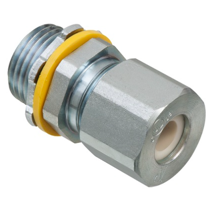Low-profile zinc plated steel die-cast, liquid-tight, and oil-tight strain relief cord connector furnished with a sealing ring and locknut. Supports 0.100" to 0.360" cord range with a 1/2" trade size.