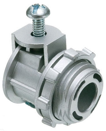Zinc Die-cast, 1/2" Knockout Saddle-type Connector With Spring Set Screw for Securing Aluminum and Steel Cable. Secures Into Knockout With a Zinc Die-cast. Provided With Insulated Throat. Concrete Tight When Taped. Supports .405 to .612 Cable Range With a .400 by .580 End Stop Diameter.