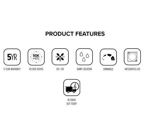 Optics: Frosted polycarbonate lens diffuses light evenly throughout while reducing glare with LED Array technology.