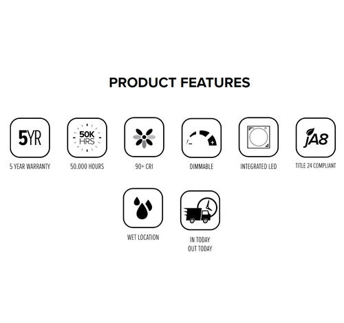LED Technology: Extremely accurate color rendering with 90+ CRI. Lumen Maintaince of 50,000 hours L70 Life based on LM80 standardized test results. Superior Thermal Management by utilizing integral heat sink. Instant On to Full Brightness. No LED pixelation.