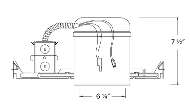Construction: Shallow Single wall IC rated for direct contact with insulation, for use in IC or non-IC conditions.Housing adjusts in frame to accommodate up to 1 1/4" ceiling thickness. Airtight housing with gasket to restrict airflow in accordance with ASTM E-283 air-tight requirements. Steel housing for greater heat dissipation. Stamped galvanized steel frame.