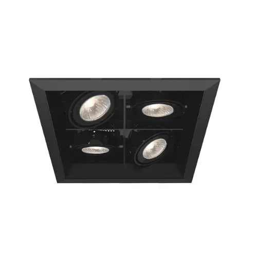 Eurofase's square 200W recessed light with trim has a black/black finish with 4-lights that holds (4) 50W MR16 GU10 bulb, sold separately. Ideal for ceilings with a height of 8 to 10 feet.