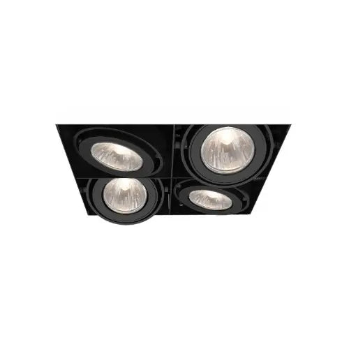 Eurofase's square 200W recessed light without trim has a black finish with 4-lights that holds (3) 50W MR16 GU10 bulb, sold separately. Ideal for ceilings with a height of 8 to 10 feet.