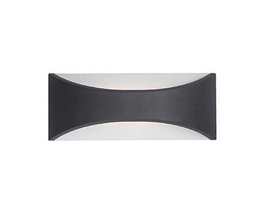 Cabo Outdoor Wall Light features a stylish relaxed arch design with two tone colors of inner White with Black, Graphite, or White exterior finishes. Available in two sizes.Specifications: