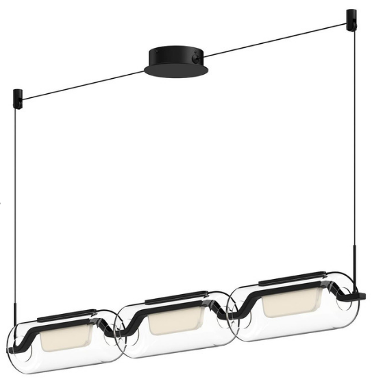 The Hilo Linear Pendant adds a unique beauty to your interior space. The smooth frame holds outer clear glass with an inner white diffuser, casting warm shadows across your room. Suitable for Sloped Ceilings.
