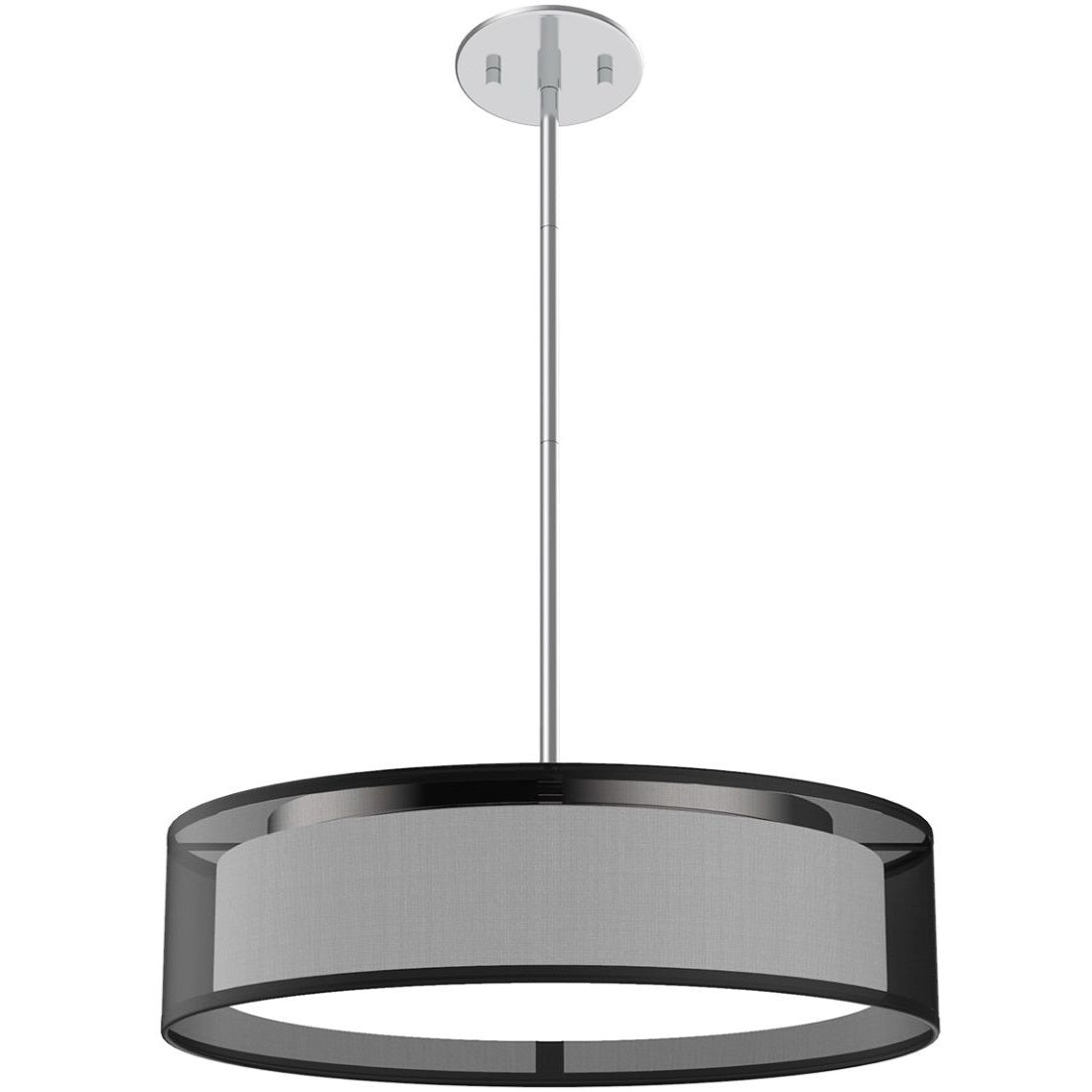 An organza band surrounds a concentric polymeric diffuser spreading even light from the LED source. Finely hand-tailored, the fabric shade contributes a soft sophistication to the modern interior. Applicable as a flush mount, pendant and in numerous sizes and fabric colors to suit your context.