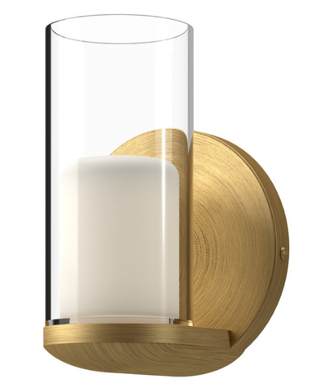 The Birch Wall Sconce brings a warm romantic look to your interior space. The smooth frame is complemented by clear cylindrical glass surrounding an inner white glass cylinder, casting bold shadows across your room. Can be mounted up or down.FEATURES :