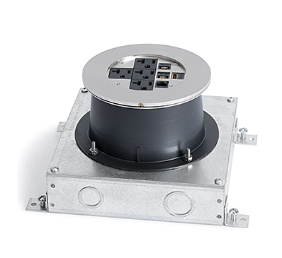 The MOI-SLB multi-connect is a dual service, round, flush to concrete floor box that provides easy access to power, voice, and data connections in unobstructed flush-to-floor required applications. The attractive appearance and innovative design create option flexibility and functionality, the box is scrub test rated for any scenario and UL rated for the USA and Canada, it is also CSA approved for Canada. Choose your exact slab depth to meet your installation needs.