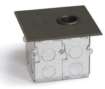 The Lew Electric RCFB-1-DB is a recessed floor box that allows the user to hide the plugs down in the box, with only the cord coming out above the floor. This creates a low-profile look without the plugs sticking up from the ground. The cover is a dark bronze color which is perfect for matching dark floors.Specifications: