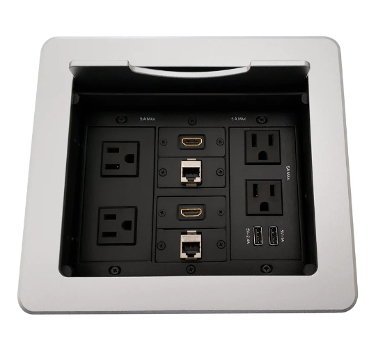 The Kramer TBUS-1N-S1 holds your connections in a stylish and compact box for your conference room or meeting room table. The top is made out of an extremely durable sand blasted silver anodized aluminum finish that is scratch resistant.Specification: